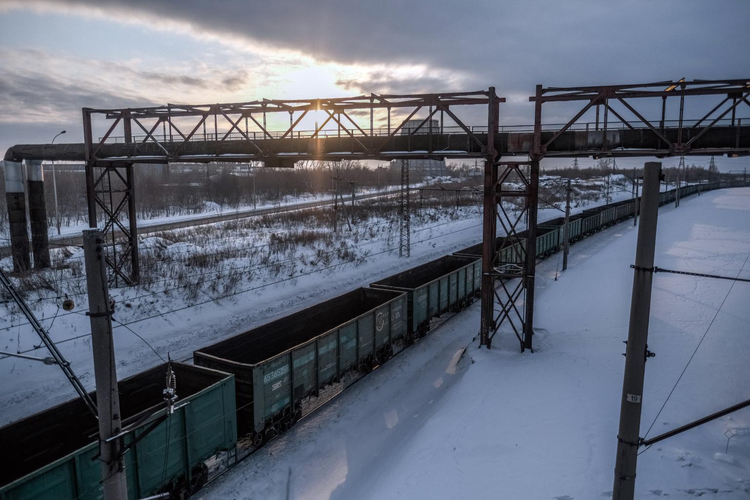 A coal train passing through Yekaterinburg, Russia, pictured on Feb 15, 2020.