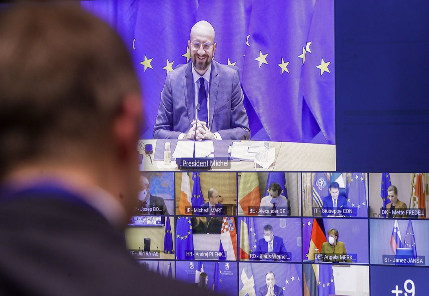 European Council president Charles Michel chairs a video conference on Covid-19, on Jan 21, 2021.
