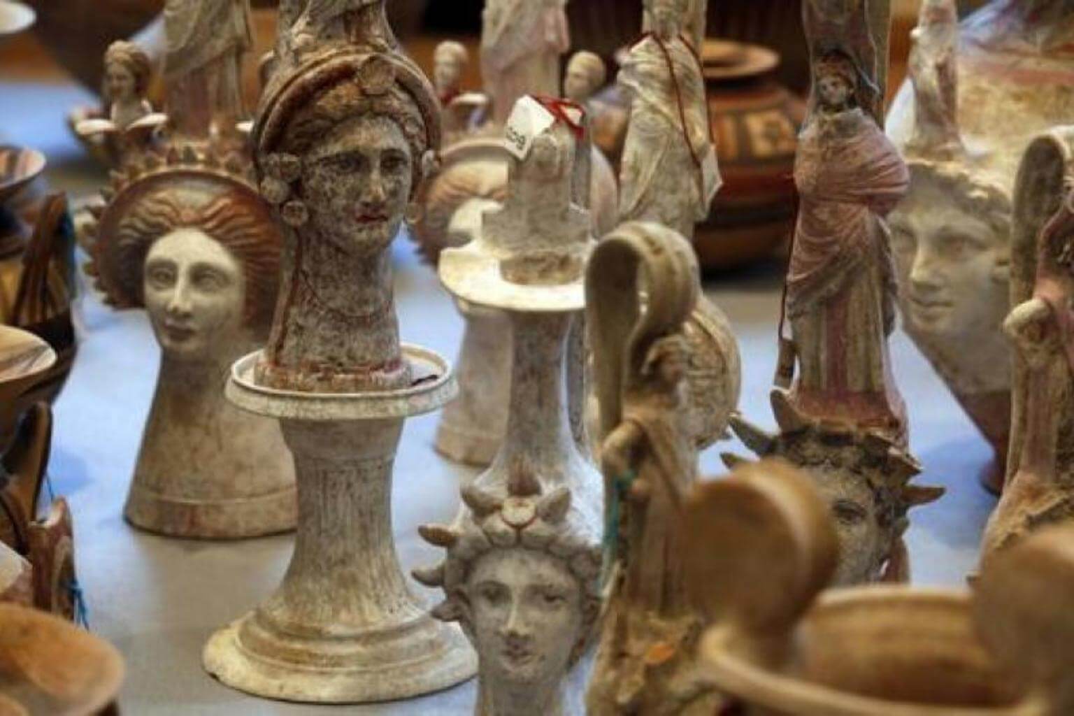 Caps Rare Greek and Roman amphoras, statues, vases and frescoes recovered by Italian and Swiss police from an art trafficking organisation.