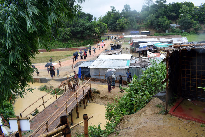 People walking after a storm at Chakmarkul refugee camp where Rohingya Muslims are taking refuge in Cox's Bazar, Bangladesh, on June 10, 2018.