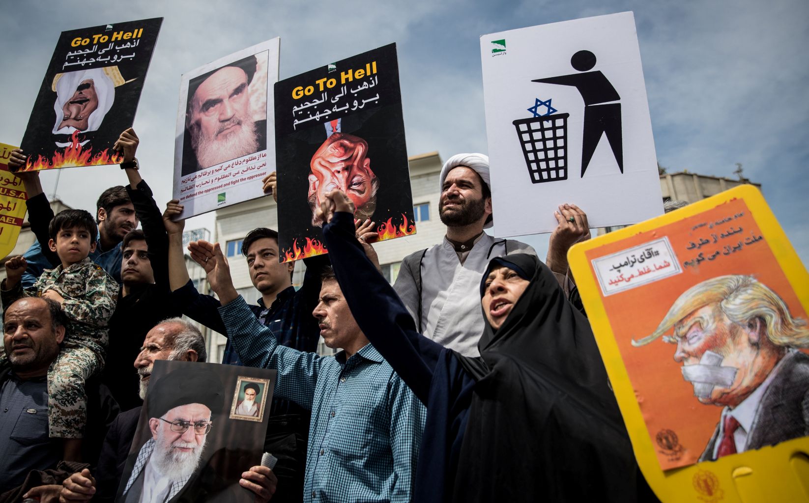 Iranians shout slogans during a protest against President Donald Trump's decision to walk out of the 2015 nuclear deal, in Teheran, May 11, 2018.