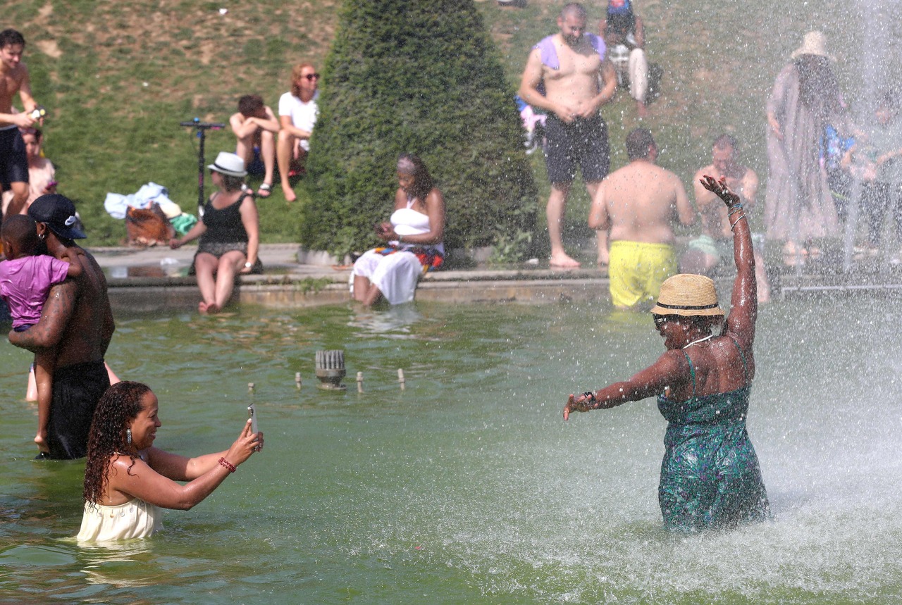 With the River Seine off limits to bathing, scorched Parisians took refuge in the city's fountains.