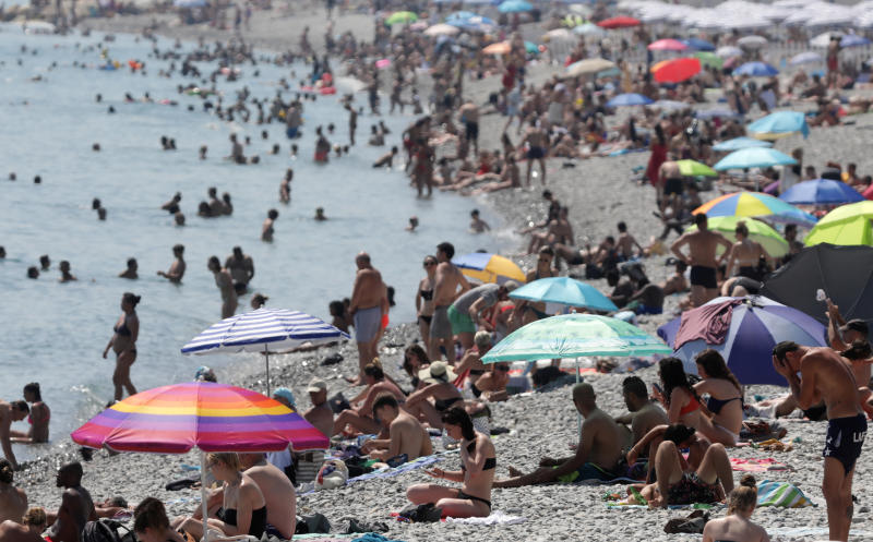 People cooling off at a beach in Nice, France, as a heatwave hits much of the country, on June 27, 2019.