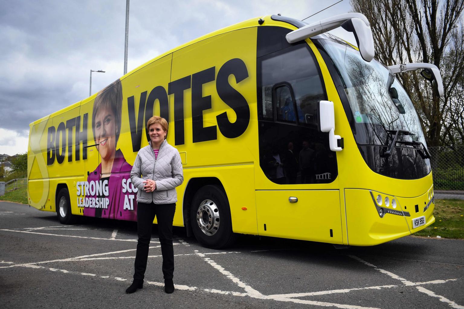 Scotland's First Minister and leader of the Scottish National Party Nicola Sturgeon campaigns in Glasgow, on May 2, 2021.