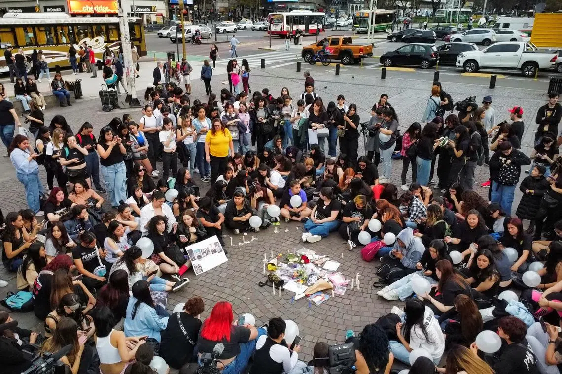 One Direction fans as they gather at the Obelisk to pay tribute to Liam Payne, in Buenos Aires, Argentina, on Oct 17.