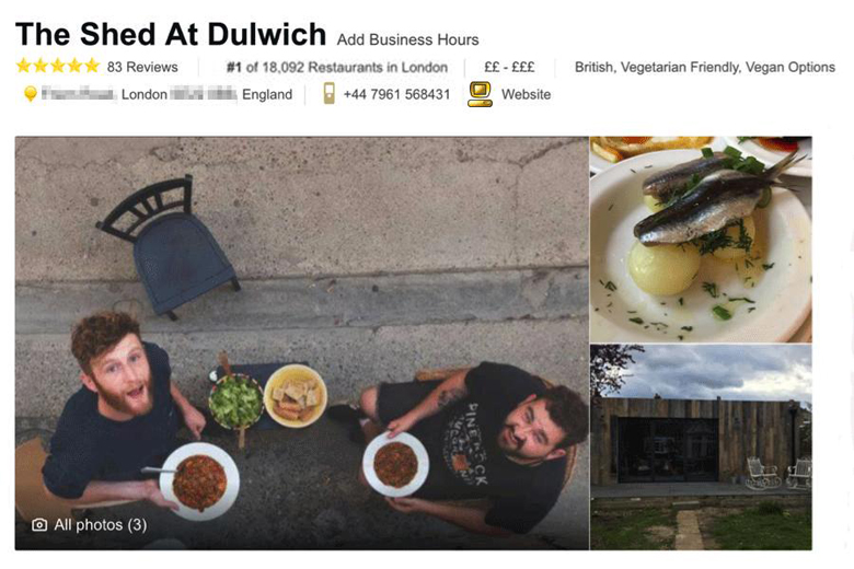 Fake restaurant becomes London's top-rated eatery on TripAdvisor
