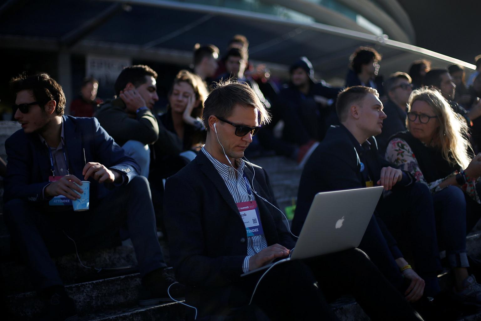 A man using his laptop during the Web Summit, Europe's biggest tech conference, in Lisbon, on Nov 8.