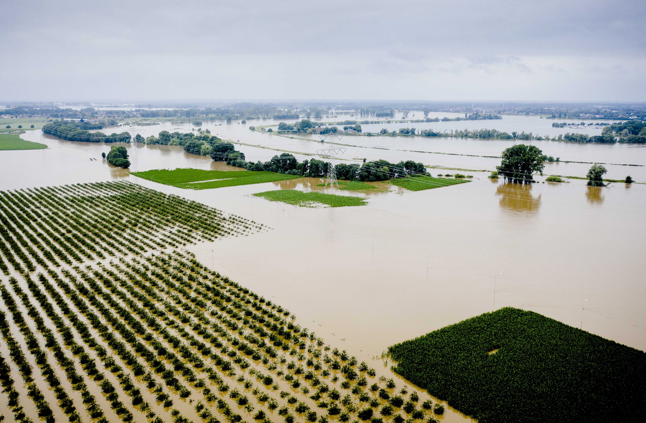 This image taken by a drone shows sustantial flooding near the Limburg hamlet of Aasterberg, Netherlands, on July 16, 2021.