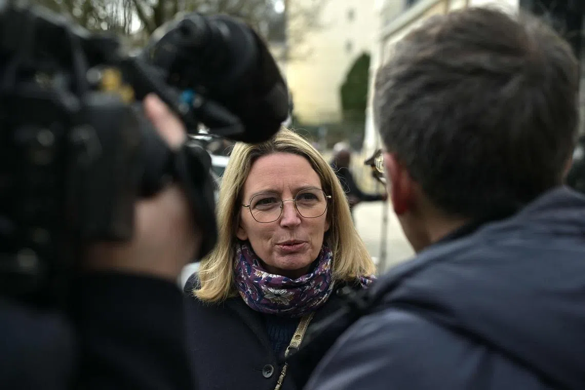 One of the victims of retired surgeon Joel Le Scouarnec, Ms Amelie Leveque-Merle, speaking to the press in Vannes, western France, on Feb 25.