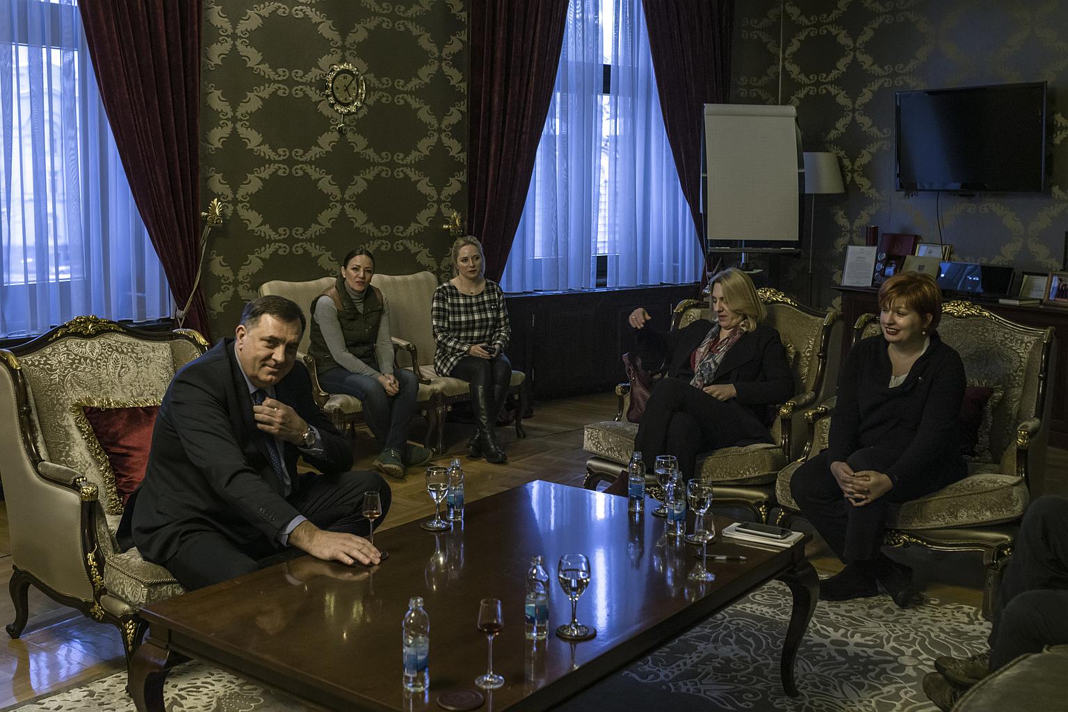 President of Republika Srpska Milorad Dodik meeting with members of his staff in Banja Luka, Bosnia and Herzegovina, on March 21, 2018. He had described the Night Wolves as harmless "tourists".