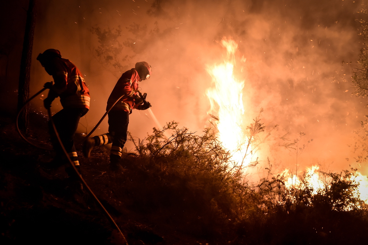 Firemen fight a wildfire in the surroundings of the village of Memoria, in Portugal, on July 12, 2022.