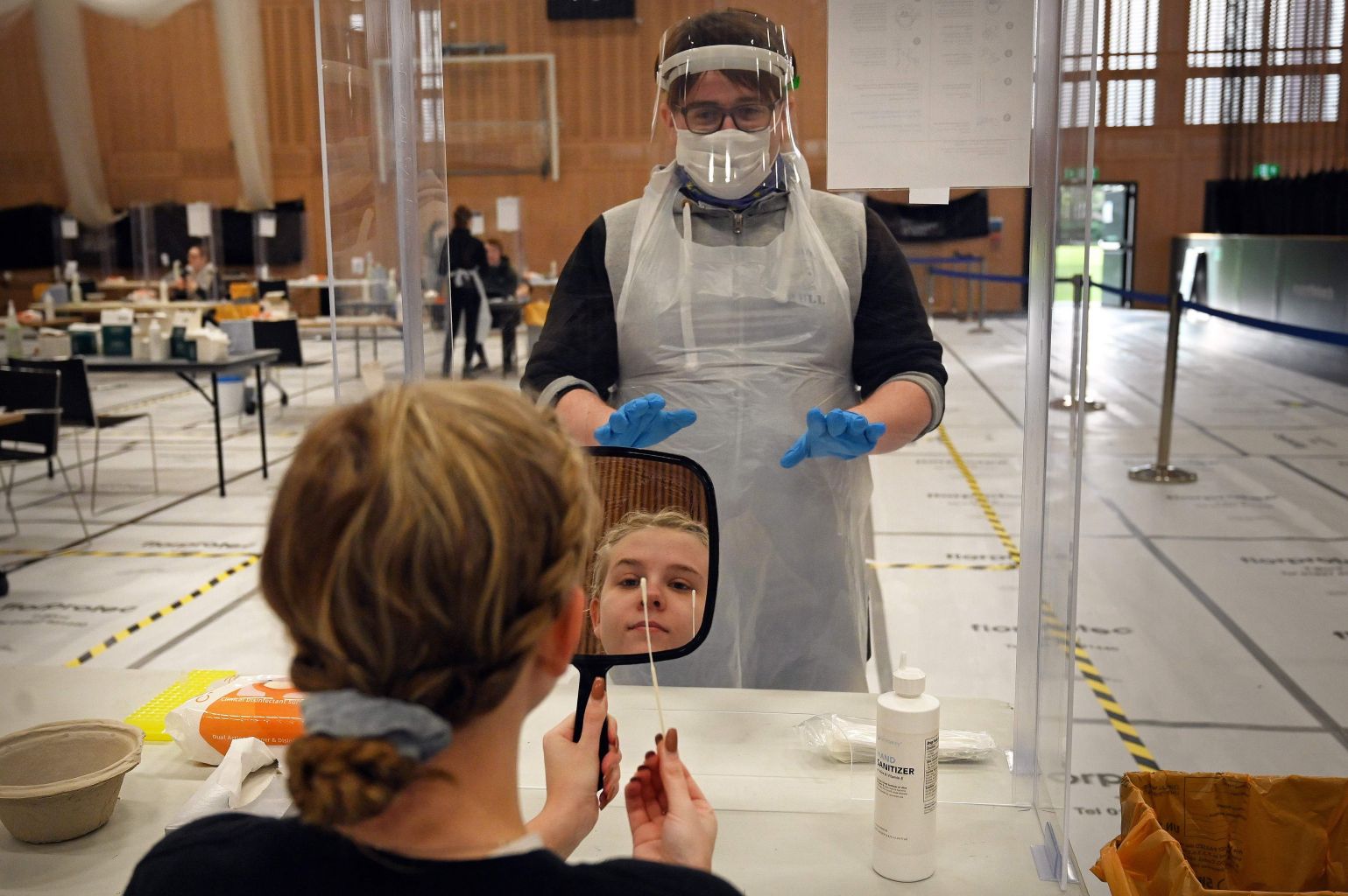 A student at Hull University in Britain takes a swab test for Covid-19 on Jan 4, 2021.