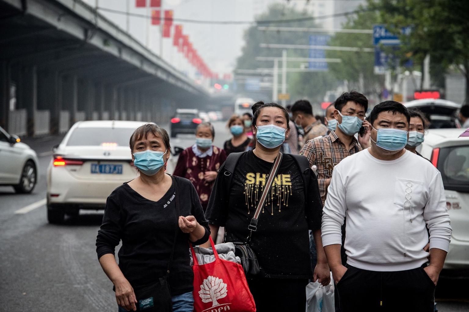 People walk along a street in Wuhan in China's central Hubei province in September 2020.