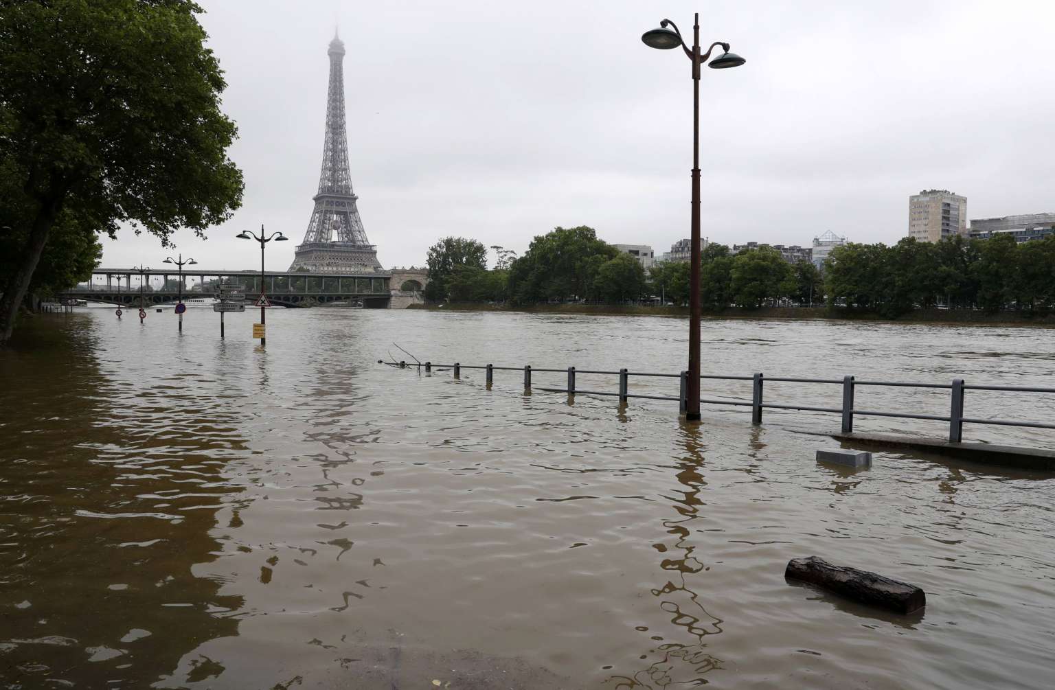 The river Seine overflowing its banks after days of non-stop rain caused flooding, near the Eiffel Tower in Paris, on June 3, 2016.