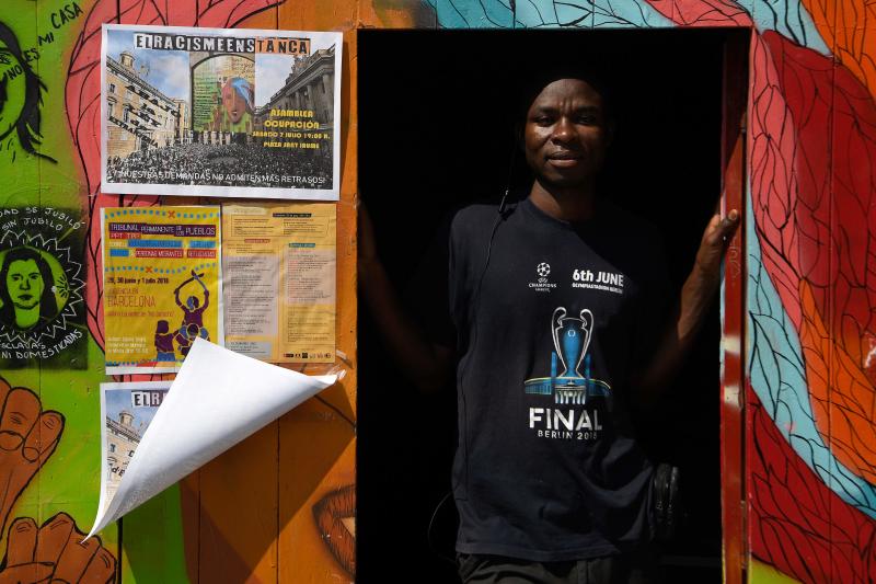 He lives with some 30 other migrants in an abandoned school in central Barcelona which they have occupied since mid-April in protest at Spain's restrictive laws on residency - despite the country's recent moves to welcome migrants.