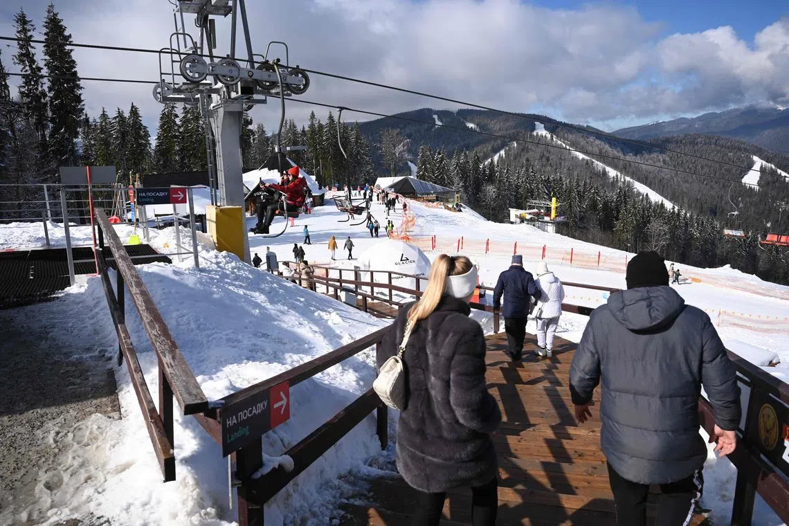 BUKOVEL, Ukraine - Far from the Ukraine war’s front lines, only the whirring of generator-powered ski lifts disturbs the calm at Bukovel in the country’s west, a winter resort nestled in the pine-forested Carpathian Mountains.