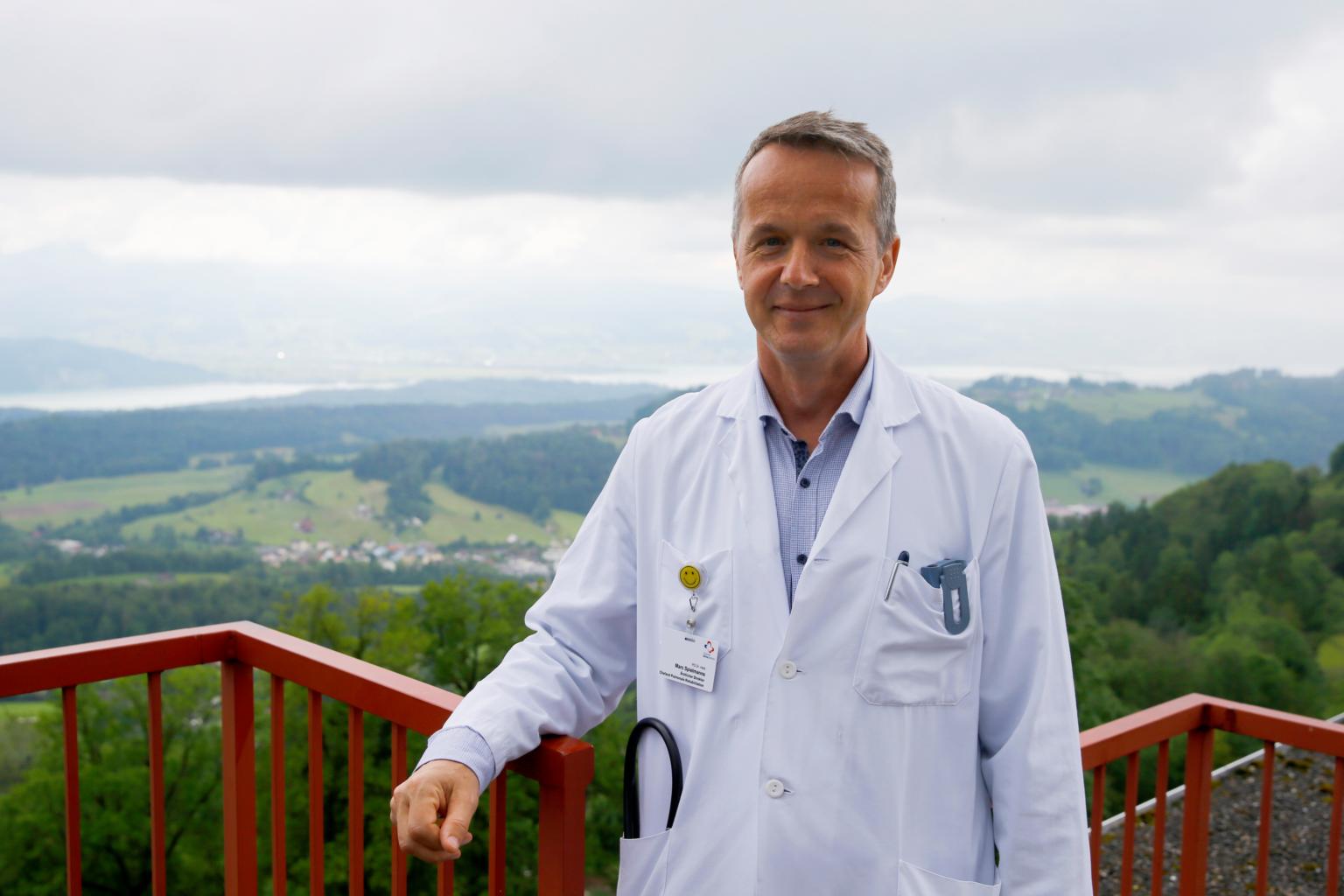 Dr Marc Spielmanns at the terrace of the Klinik Wald rehabilitation clinic in Wald, Switzerland, on June 8, 2021.