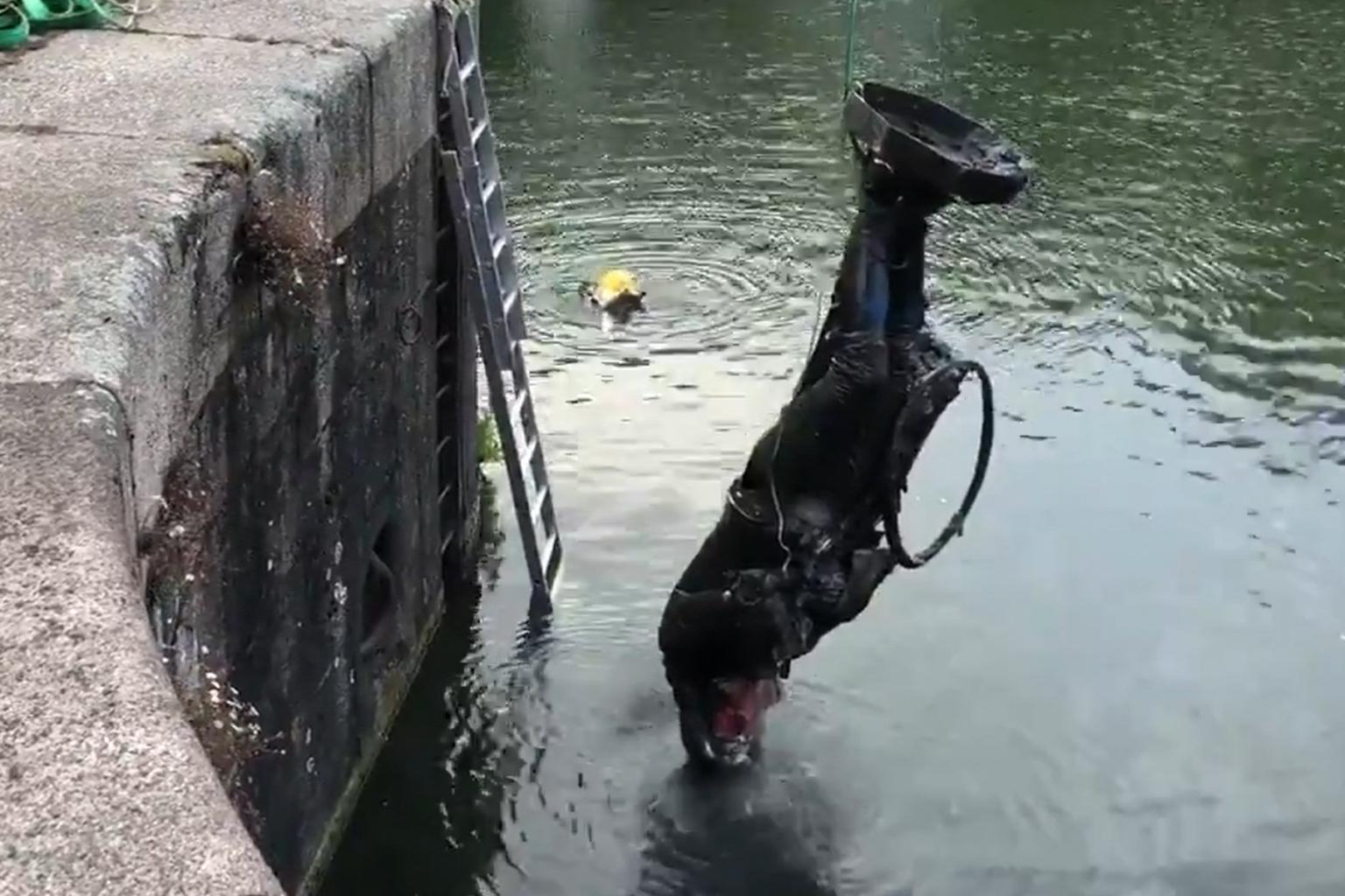 The statue, which had stood in the city since 1895, was recovered from the Avon and put on display with placards from the event, along with explanations of what happened and why.