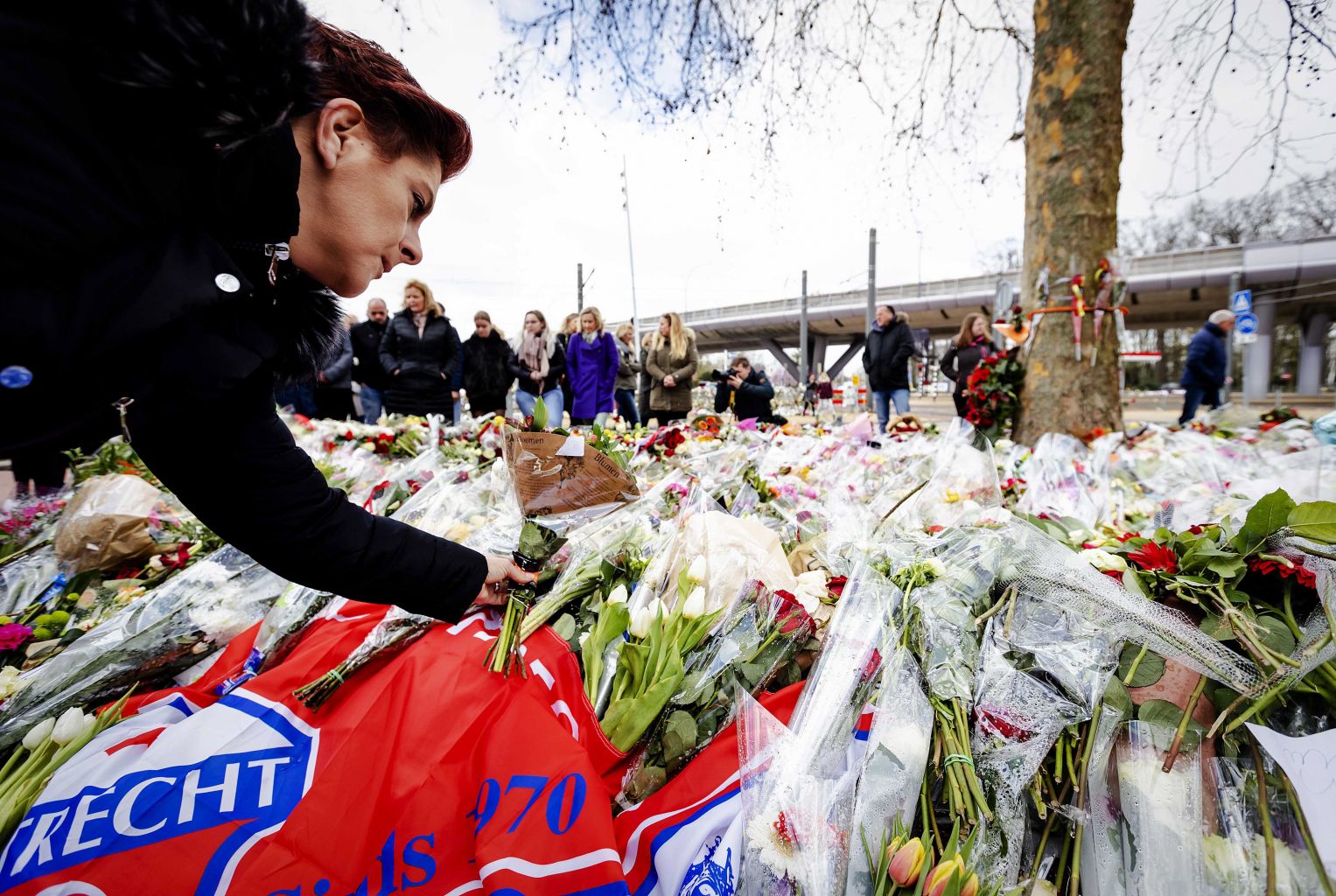Flowers laid at the 24 Oktoberplein, a week after the attack in Utrecht.