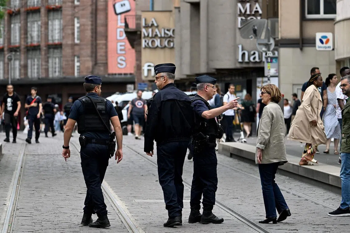 Riot police monitor a commercial street in Strasbourg, eastern France.