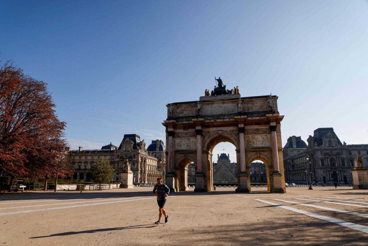 A jogger runs in front of Arc de Triomphe in Paris on Nov 6, 2020, during a Covid-19 lockdown.
