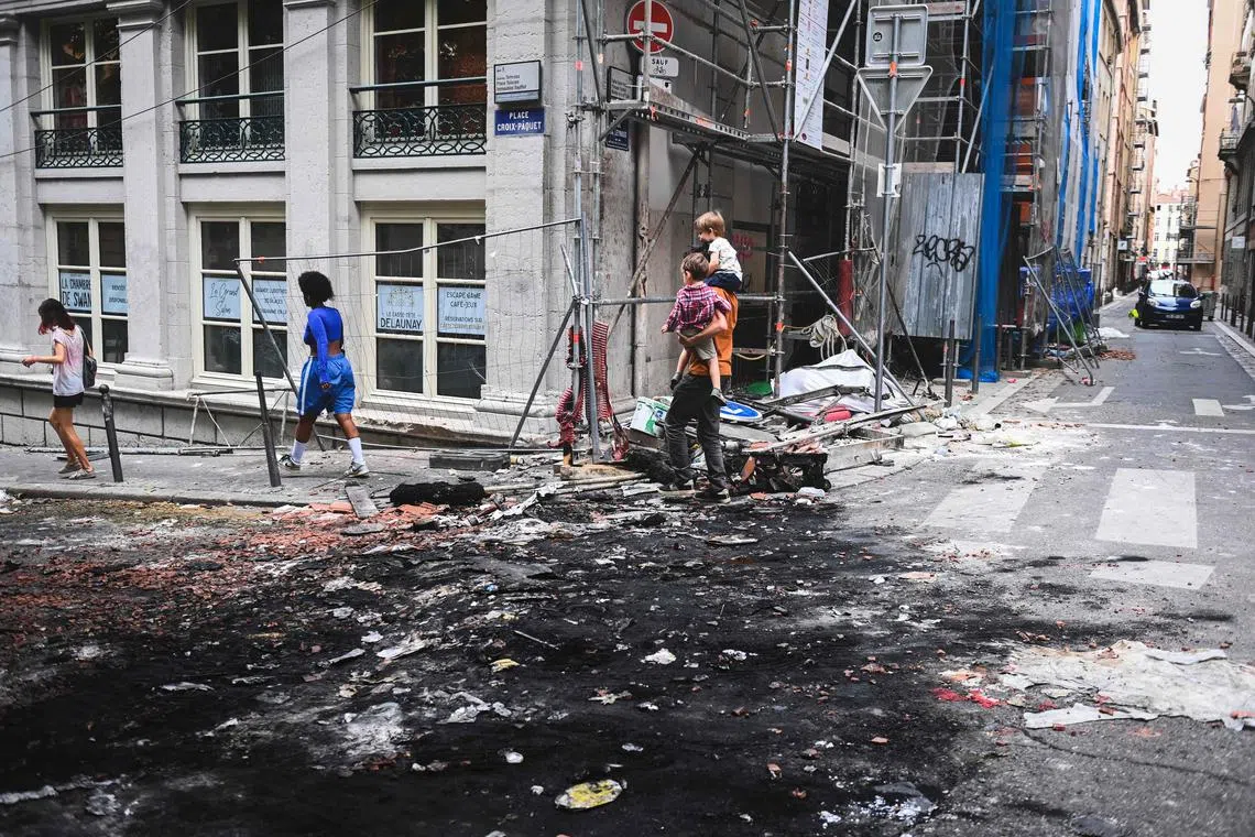 Burnt debris on a street after a fourth consecutive night of rioting in Lyon, south-eastern France, on July 1, 2023.