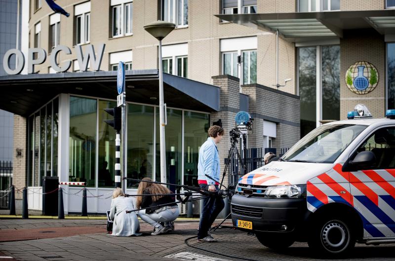 An exterior view of the headquarters of the Organisation for the Prohibition of Chemical Weapons (OPCW) in The Hague, The Netherlands, on April 16, 2018.