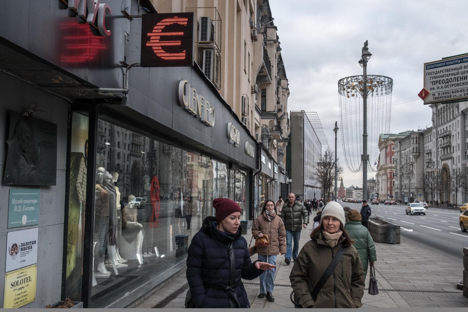 A currency exchange in Moscow. France, the EU and others said earlier they would impose a new round of sanctions on Russia.