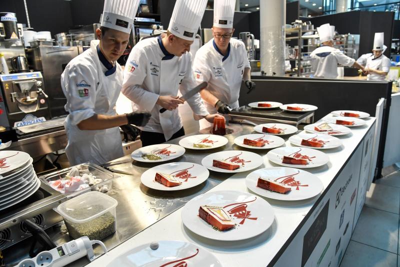 French artisans preparing their dishes during the 8th Gelato World Cup in Rimini, Italy, on Jan 20, 2018.