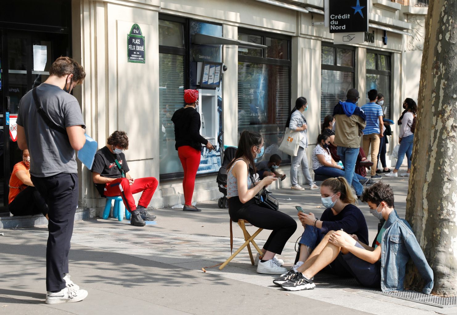 People wait to get tested for coronavirus in Paris, Sept 11, 2020.