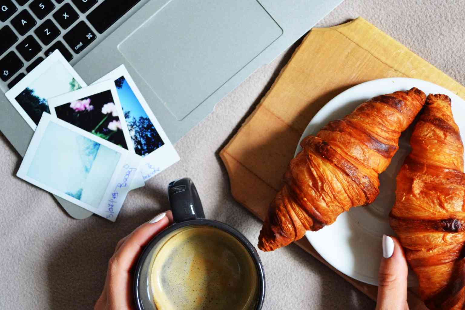 The woman at her desk pictured in the conservative daily Le Figaro looked far less content, with a phone in one hand, a fork in the other and her eyes on a screen.