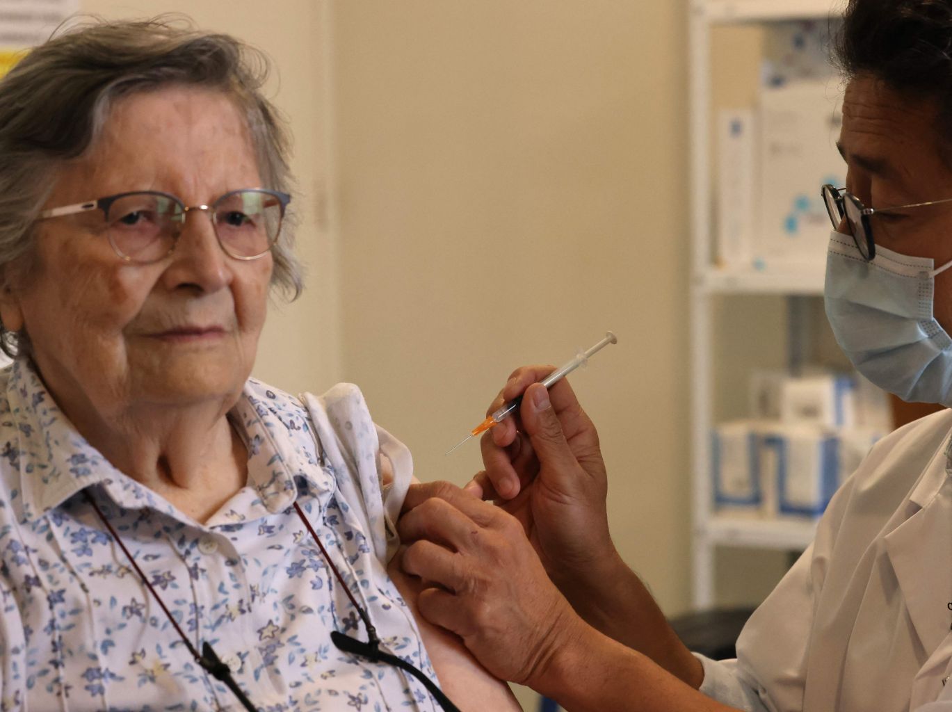 An ederly patient receives her third dose of the Pfizer-BioNtech Covid-19 vaccine in Paris, on Sept 13, 2021.