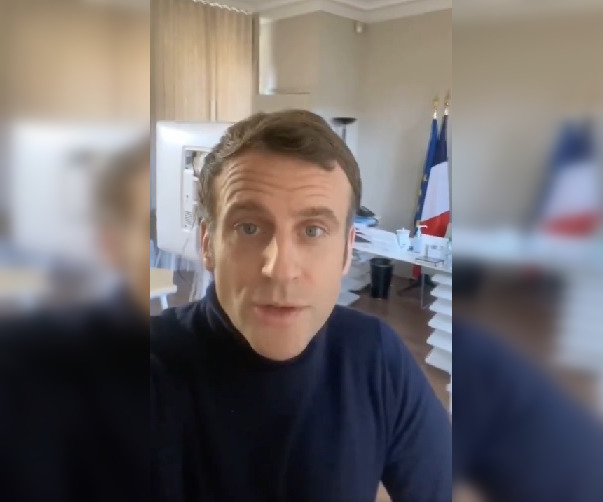 Macron in a screenshot from a video he posted online about his illness.