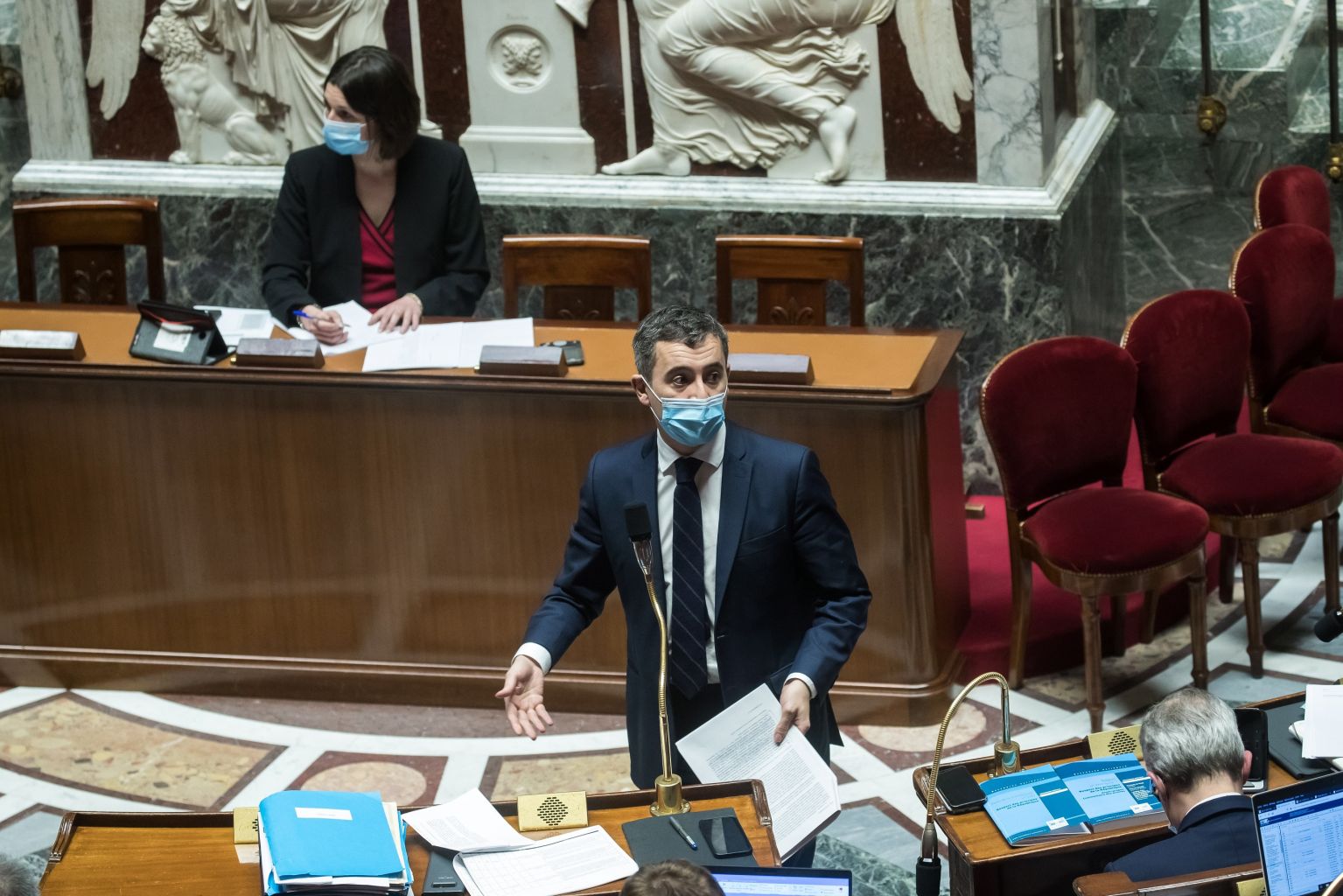 French Interior minister Gerald Darmanin speaks during a debate on the Bill "Principes Republicains" (Republican Principles) in Paris.
