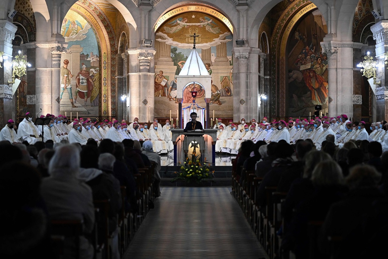 A mass held at the Notre-Dame-du-Rosaire basilica after a ceremony for victims of pedocriminality, in Lourdes, France on Nov 6, 2021.