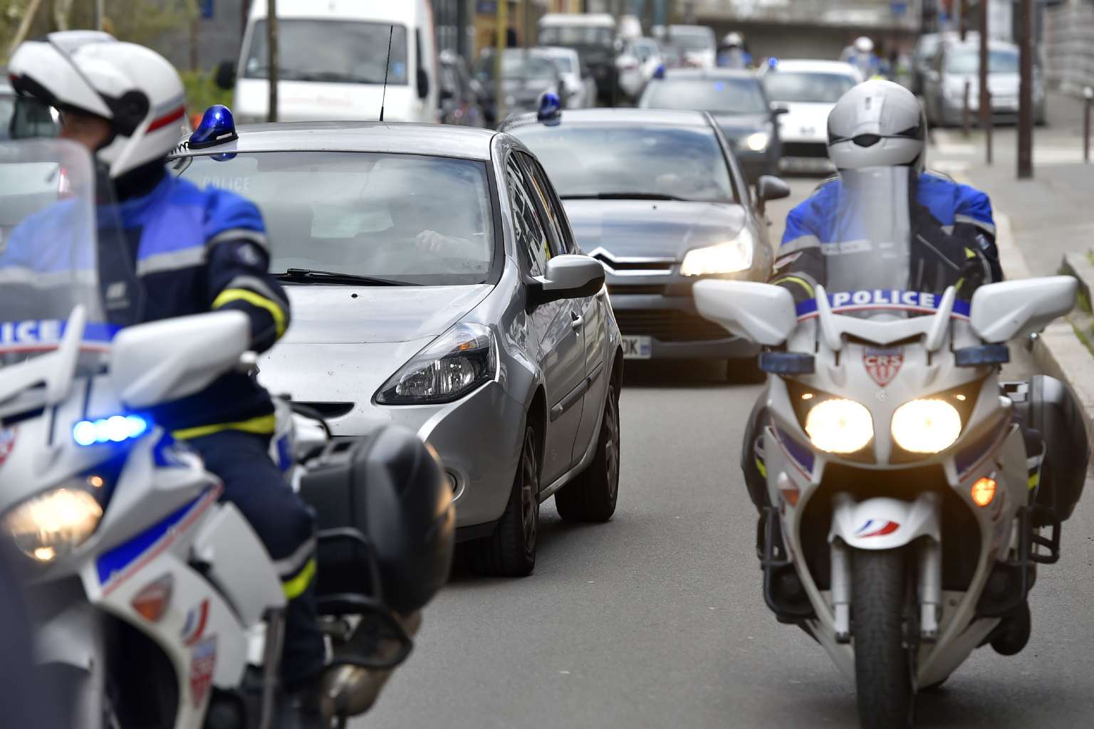 A police convoy transports two suspects in the murder of the French Troadec family to the Nantes courthouse on Monday (Mar 6, 2017).