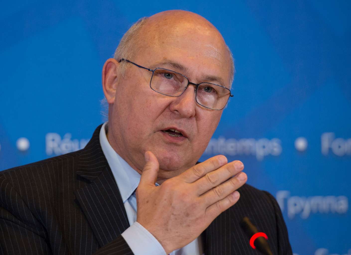 French Finance Minister Michel Sapin speaks during a press conference at the IMF and World Bank Group 2016 Spring Meetings on April 16, 2016 in Washington, DC.
