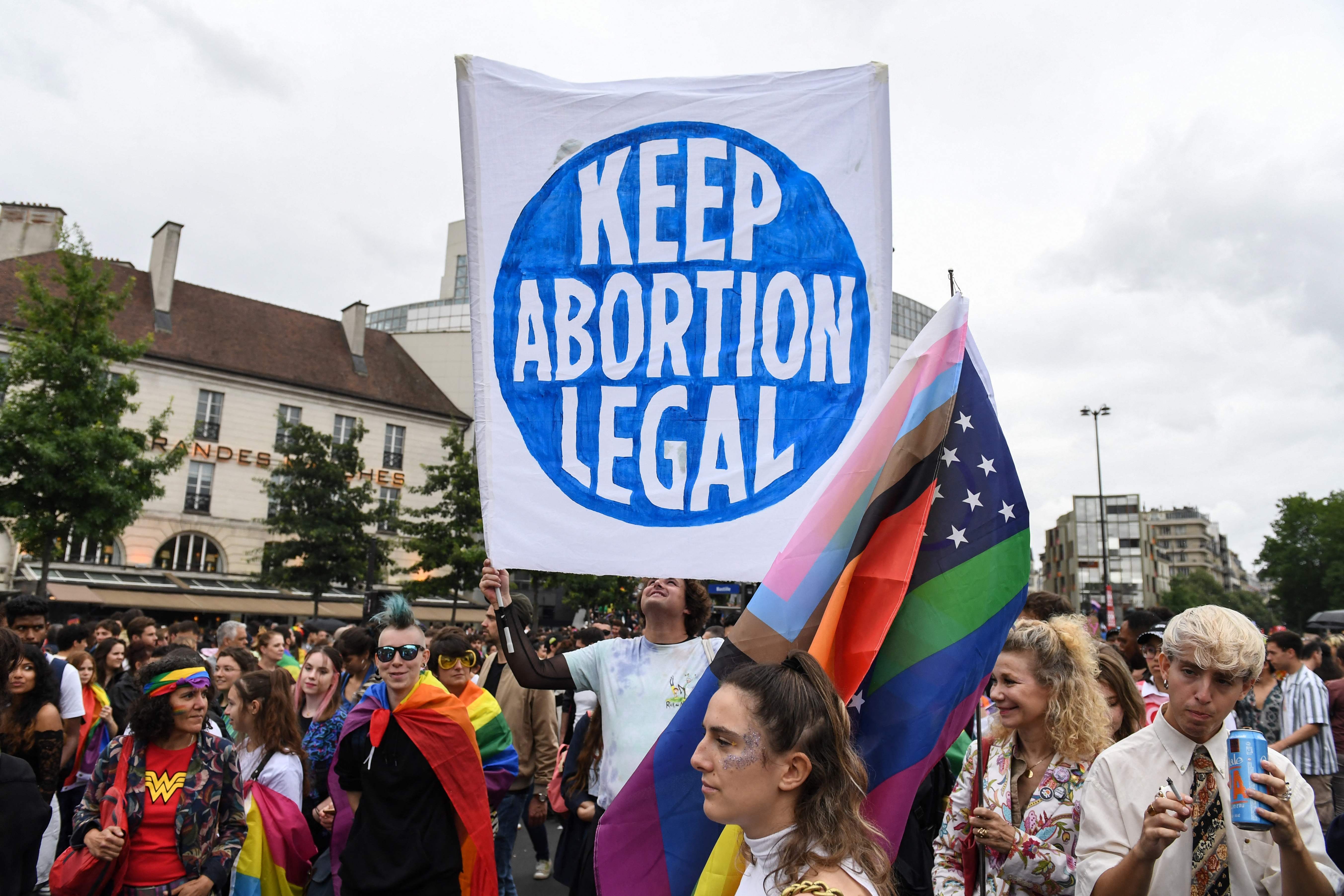 In Paris, protesters defended abortion rights for a second day running on Saturday, this time at the annual Pride Parade.