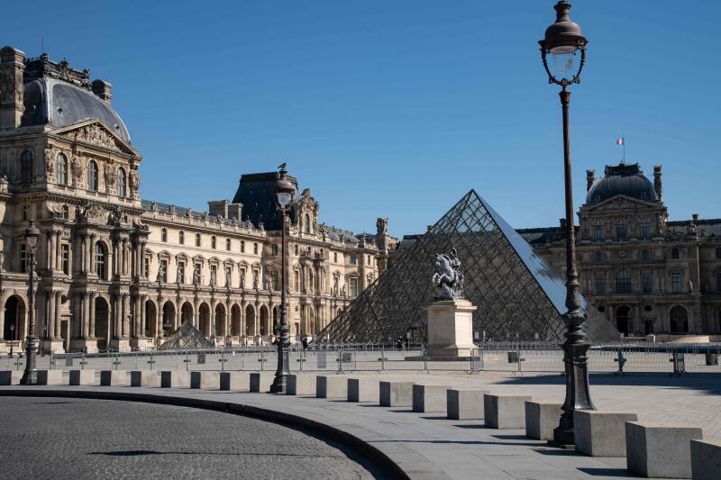 The area around the Louvre Museum is seen empty on the seventh day of a strict lockdown in France aimed at curbing the spread of the coronavirus, in Paris, on March 23, 2020.