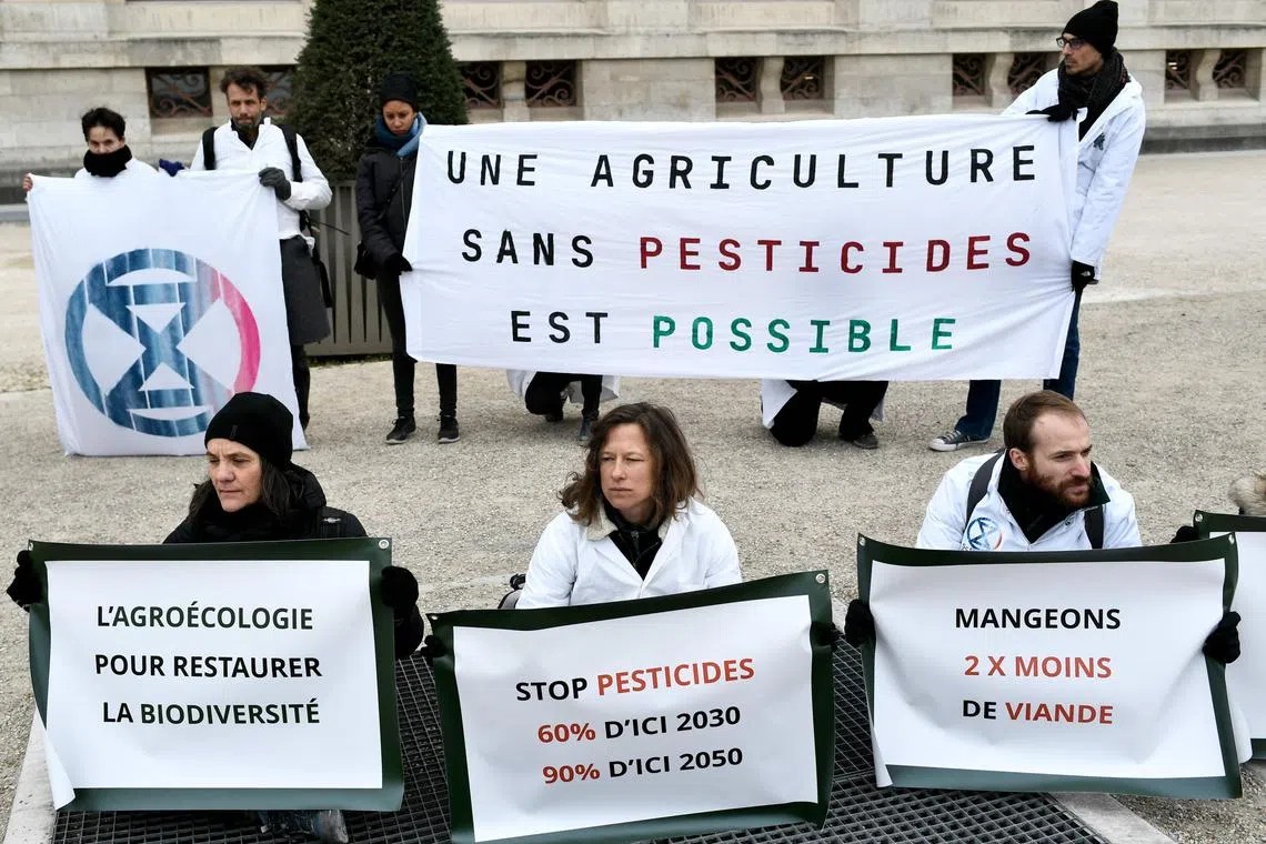 Activists hold a banner reading “A pesticide-free agriculture is possible” during a demonstration in Paris.