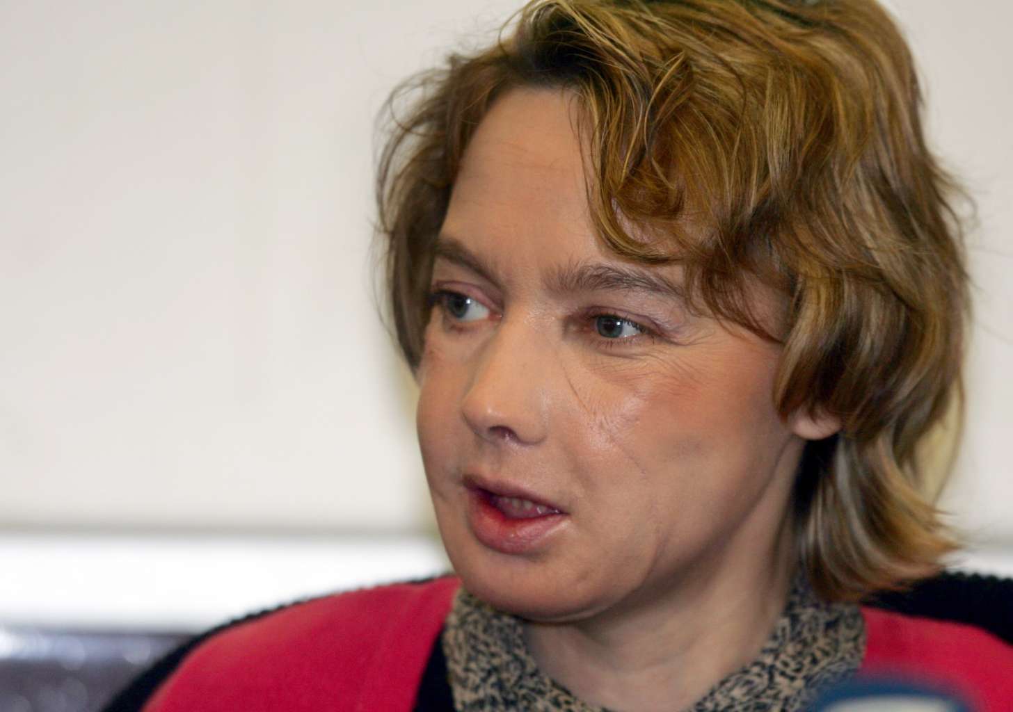 A 2006 photo shows Isabelle Dinoire, the woman who received the world's first facial face transplant in Amiens, northern France, speaking during a press conference.