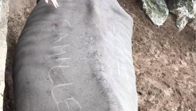 A photo of the rhino with the names "Camille" and "Julien" on its back shared on social media.
