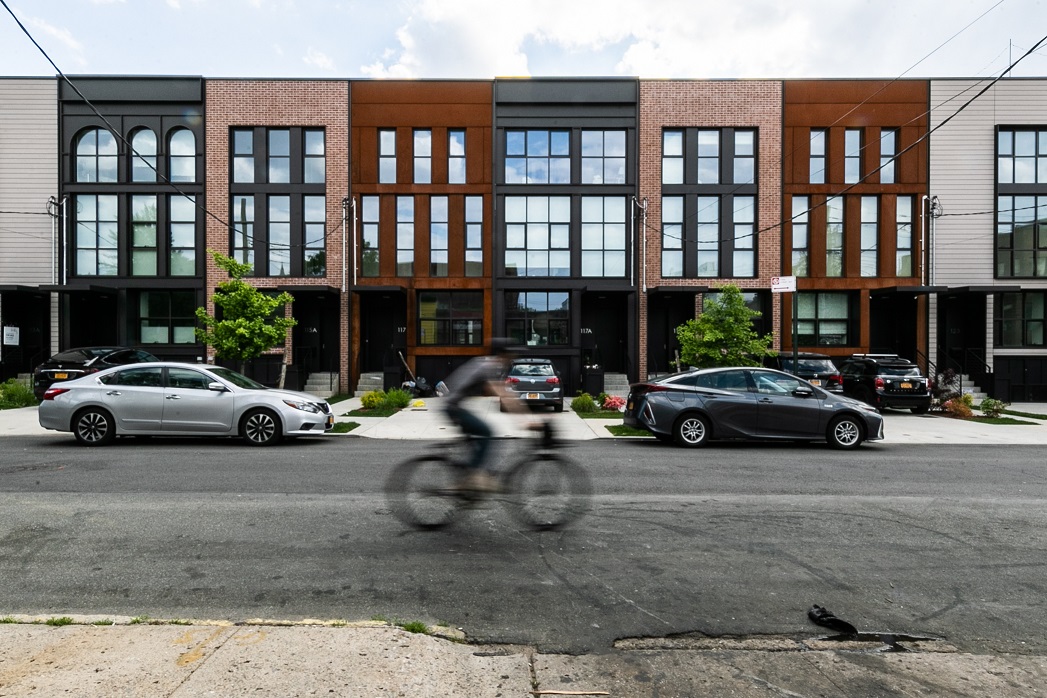 A row of town houses along King Street in the Red Hook neighbourhood of the Brooklyn borough of New York.