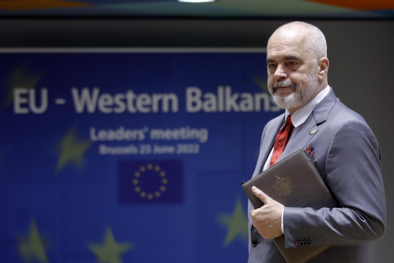 Albanian Prime Minister Edi Rama attends an EU-Western Balkans leaders' meeting in Brussels on June 23, 2022.