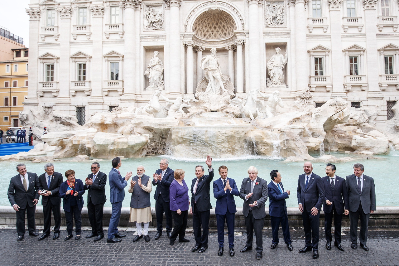 G-20 leaders during a visit to the Trevi fountain in central Rome on Oct, 31, 2021.
