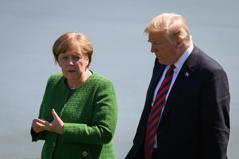 Germany Chancellor Angela Merkel and US President Donald Trump during the G-7 Summit in La Malbaie, Canada, on June 8, 2018.