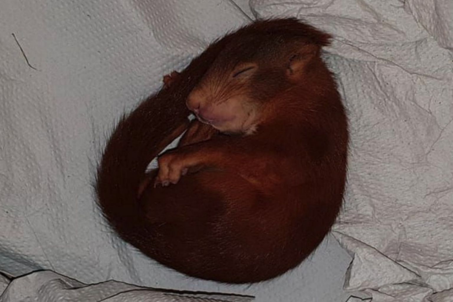 Karlsruhe police later posted photos of the squirrel on Twitter, showing it being fed, napping, and doing time in a cardboard box filled with leaves.