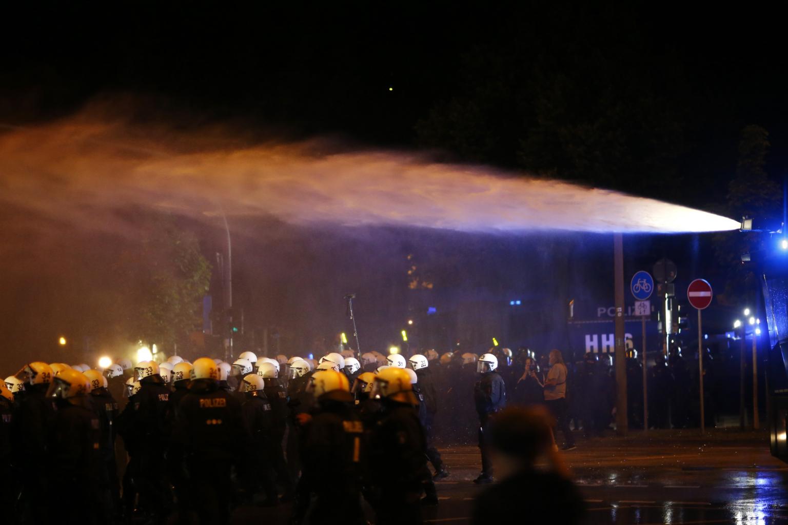 A little later, shortly before midnight, police used water cannon and pepper spray to disperse rallies of several hundred people who had started blocking roads in various locations, in particular the Sankt-Pauli neighbourhood.