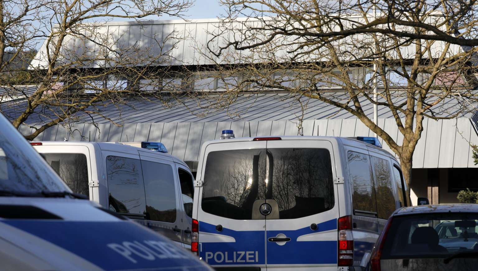Police cars in front of the festival hall in Gaggenau, near Karlsruhe, Germany, on March 2, 2017. City administration and the police of Gaggenau have cancelled a convention organised by Union of European Turkish Democrats due to security reasons.