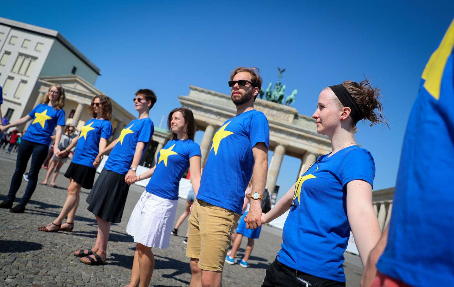 Members of the Jusos, the youth organisation of Germany's Social Democratic Party and the Green Youth gather for a rally entitled "Europe has a future" in Berlin, on June 24, 2016.